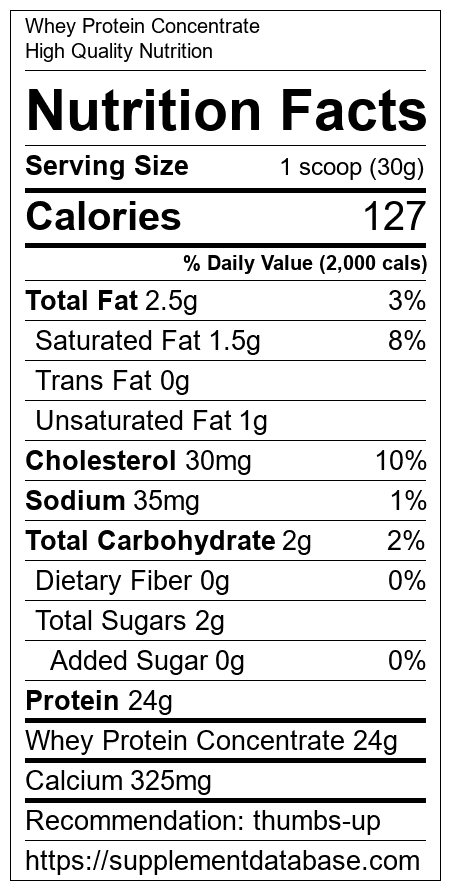 Whey Protein Concentrate is a protein supplement manufactured by High Quality Nutrition. It ranks 3 out of 466 protein supplements and earned an overall thumbs up recommendation based on several factors including effectiveness, research rating, ranking, protein content, and nutrition label transparency.