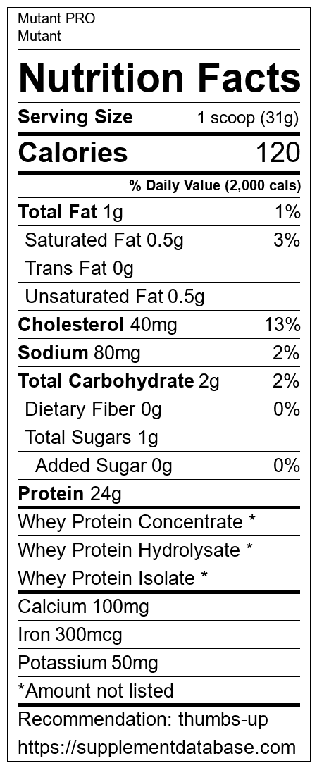 Mutant PRO earned a thumbs-up in this category because it discloses 100% of its fat content. A product must disclose all fat types and amounts on its product label to receive a thumbs-up in this area.